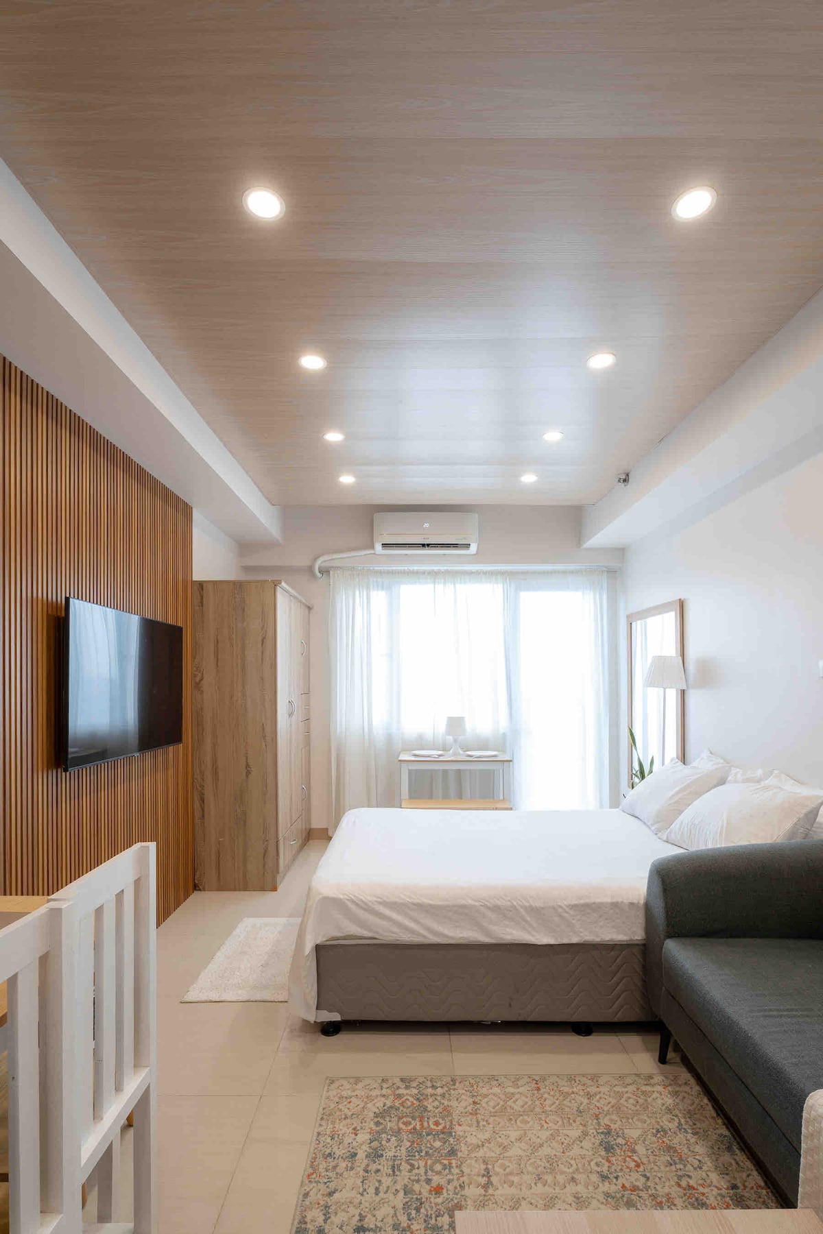 Located at North EDSA. A 1-bedroom unit converted to a studio unit to maximize the natural lighting and give a refreshing change. It is my own home during Medical Internship up to Residency. We wanted to make a Commonspace where you can work and relax at the same time 🍃