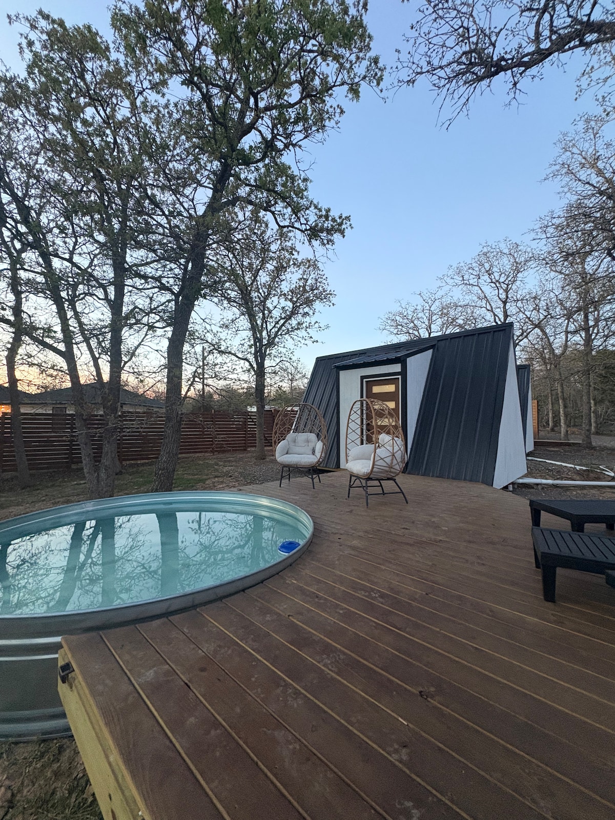 オースティン近郊の居心地のよい三角屋根の隠れ家的な宿泊先(カウボーイプール付き)