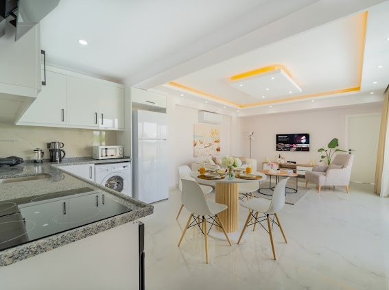 ナカススイートはそれぞれ50平方メートル以上あり、異なるコンセプトを持ち、特別に設計されています。 各スイートには、寝室、リビングルーム、バスルーム、キッチンがあります。 そしてこちらはペントハウススイートです ユニークな海の景色と快適さをご提供します。湾まで5分、中心部とショッピングエリアまで5分、オルデニズまで25分の距離にあります。お迎えするのを楽しみにしております。