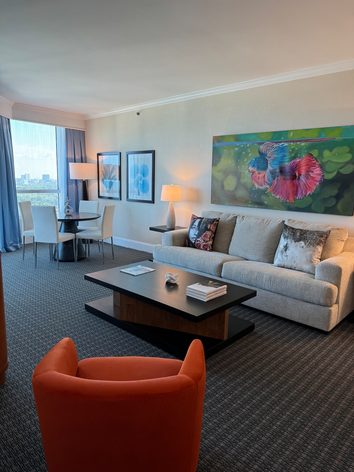 UPGRADED JULY 2024: The one bedroom sleeps up to 4 people, between the king size bed in the bedroom, a full size sofa bed that acts as the second bed in the living room and maximum Washer / Dryer and full kitchen with stove / microwave / dishwasher. Full resort access including spa/gym Guests are entitled to two Lapis spa passes daily You must pay the mandatory $200 check out cleaning fee to the hotel upon departure Parking is with Valet and is done through the hotel