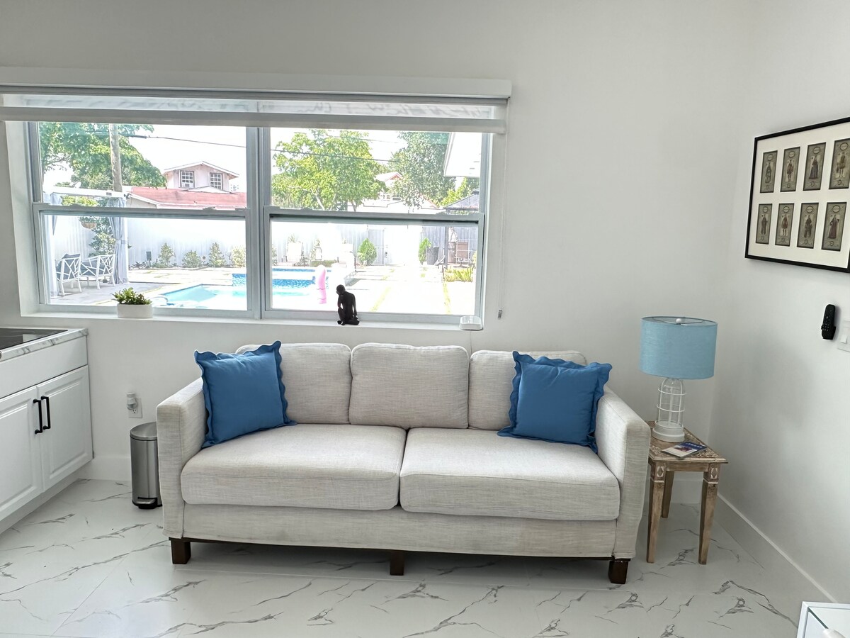マイアミの快適なアパート カップル、一人旅、短期滞在に最適なこのアパートで快適な滞在をお楽しみください。 備品: • プライベートルーム •快適なソファで休息 • 小さなキッチンには、調理台、コンロ、冷蔵庫、電子レンジが備わっています お部屋は清潔で機能的で、ご自宅のようにおくつろぎいただけるよう、必要なものがすべて揃えられています。周囲を楽しみながらリラックスして仕事をするのに最適です