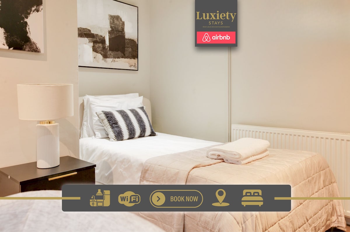 🏳 Luxiety Stays Short Lets & Serviced Accommodation Cambridge 🏳 🏠 Quad room with private Ensuite in the heart of Cambridge ✔️ Sleeps Up to 4 Guests ✔️ Bedroom 1 - 1 x King Bed ✔️ Bedroom 2 - 2 x Single Beds ✔️ Access to Kitchen and Lounge ✔️ Superfast Free Wi-Fi ✔️ Smart TV ✔️ Modern Designed Room ✔️ Professionally Cleaned ✔️ Free On-Site Parking ✔️ Perfect for Short or Long Stays Ideal for: ➞ Students ➞ Solo Travellers ➞ Families ➞ Contractors ➞ Business Trips ➞ Weekend Getaways
