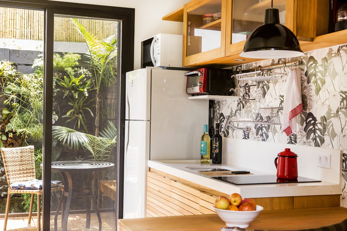 キッチン、エアコン、Wi-Fiを備えた広々とした家具付きアパート。完璧なプライバシー! ビーチへの専用通路。 海、島々、周囲の森の素晴らしい景色。 カンブリジーニョビーチの砂浜に面した広大な敷地内に3つのキャビンのみがあり、大西洋岸森林の私有保護区の真ん中にあり、湧き水が供給され、アクセスも簡単です。 プライバシー、快適さ、安全性。 週末は日曜日にチェックアウトが無料です!