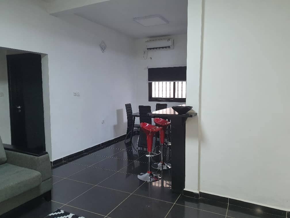 Appartement meublé de deux chambres situé à Makepe, Douala, en bordure de route. Complètement équipé, il est idéal pour les cours et longs séjours. Équipé de deux balcons, internet illimité haut débit (fibre optique), Canal Sat, une Smart TV avec Netflix, Amazone Prime et YouTube intégrés, sécurité 24/7, caméras de surveillance dans l’immeuble, parking gratuit, ballon d’eau chaude, machine à laver, cuisine équipée, climatiseurs dans toutes les pièces, deux ventilateurs, groupe électrogène.