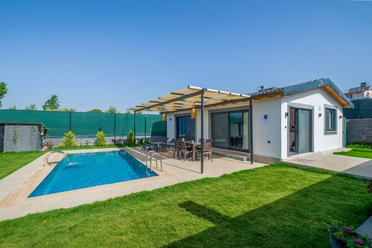 Muhteşem manzaralı müstakil havuzlu villamız hazırdır. İki odalı olup toplam 4 kişilik yatak vardır. Her odada klima vardır. Bahçede ışıklandırması ile barbekü mevcuttur. Bulaşık Makinesi fırın televizyon çamaşır makinesi ütü ve saç kurutma makinesi vardır. Yüksek tavanlı olduğu için olağanüstü bir atmosferde tatil yapın. Basık tavanlı bir odada mi yoksa yüksek tavanlı bir oda mi derseniz bizi seçin lütfen. Tüm karşılaşmalar ve villa çıkışı bizzat benim tarafımdan yapılacaktır. Görüşmek üzere.