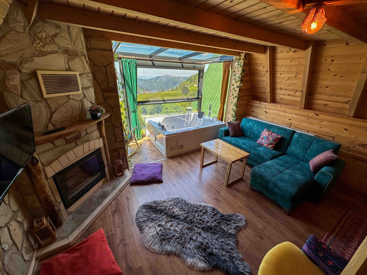 -私たちのバンガローは完全に木製で、本物のデザインです。 - バンガローには暖炉があり、壮大な渓谷と山の景色を眺めることができます。 - 部屋の広さは45平方メートルです。 - ハネムーンのカップルが簡単に選択できるコンセプトです。 - 下の階はリビングルームで、バルコニー、ソファ、バスルーム、テレビ、ミニバーなどがあり、上の階にはダブルベッド(2人用)があります。