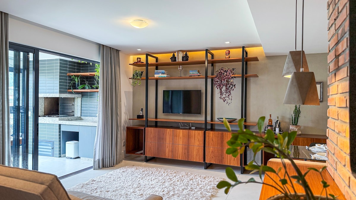 フロリアノポリスのノーヴォ・カンペシェにある海辺のコンドミニアム内のアパートメント。2つのスイートとクイーンサイズベッドを備え、快適で最高のロケーションにあり、ビーチに隣接しています。 フルキッチン、食器洗い機、洗濯機、乾燥機、バーベキューグリル、ビール醸造機を完備。1GBのWi-Fi、スマートテレビ、デスク、屋根付き駐車スペース2台分を完備。乳幼児向け設備もあります。 プール、ジム、ゲームルームを備えた高級コンドミニアム。 快適で実用的な環境でリラックスするのに最適です。