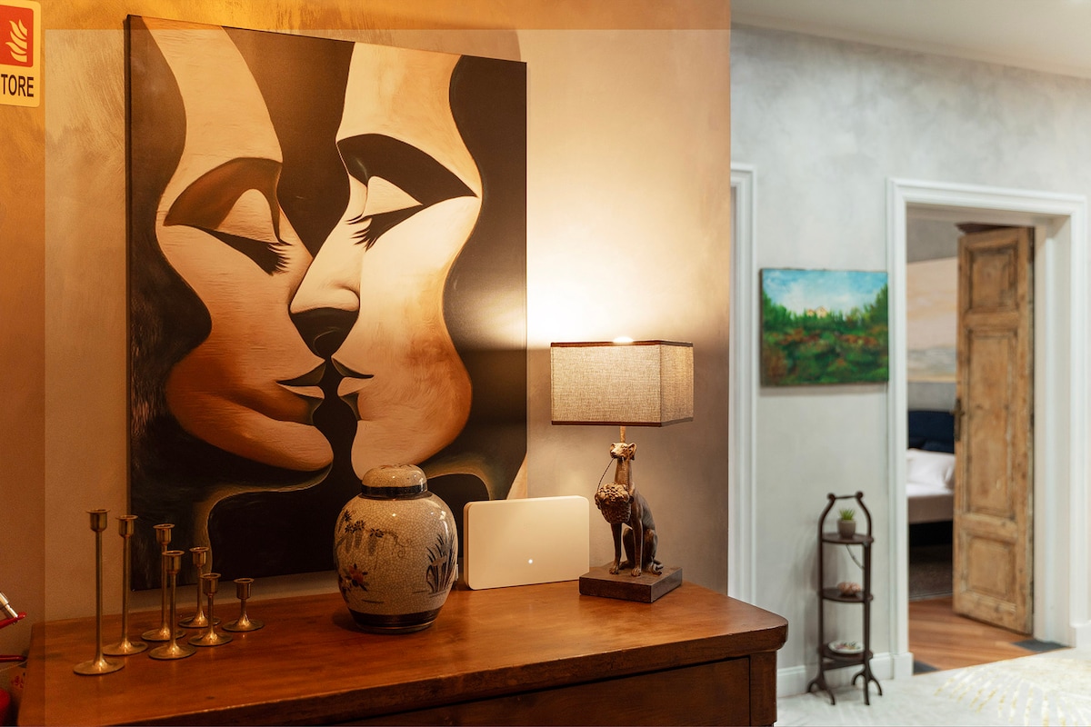 Spacious apartment with a modern and refined design in the heart of the ancient and characteristic Ghetto, the enchanting Roman Jewish district. You will be immersed in a welcoming and cozy atmosphere, with top quality furnishings and ultimate comfort. A unique and unrepeatable stay in the heart of Rome! In a strategic and exclusive position, you will be wrapped in an area of unique charm, close to the best cultural and historical sites, with typical restaurants, bars, clubs and shops.