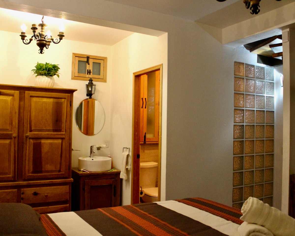 静かな庭園に囲まれたモダンなスタジオは、サンミゲルの中心部から徒歩すぐの場所にあります。豪華なクイーンサイズのベッド、高速Wi-Fi、設備の整った簡易キッチンなど、現代的な快適さを備えたリラックスした滞在をお楽しみください。 朝は、豊かな緑に囲まれたプライベートパティオでコーヒーを飲み、夜は近くのカフェ、ギャラリー、史跡を散策してリラックスしましょう。リラクゼーションと便利さの理想的な融合を体験してください。