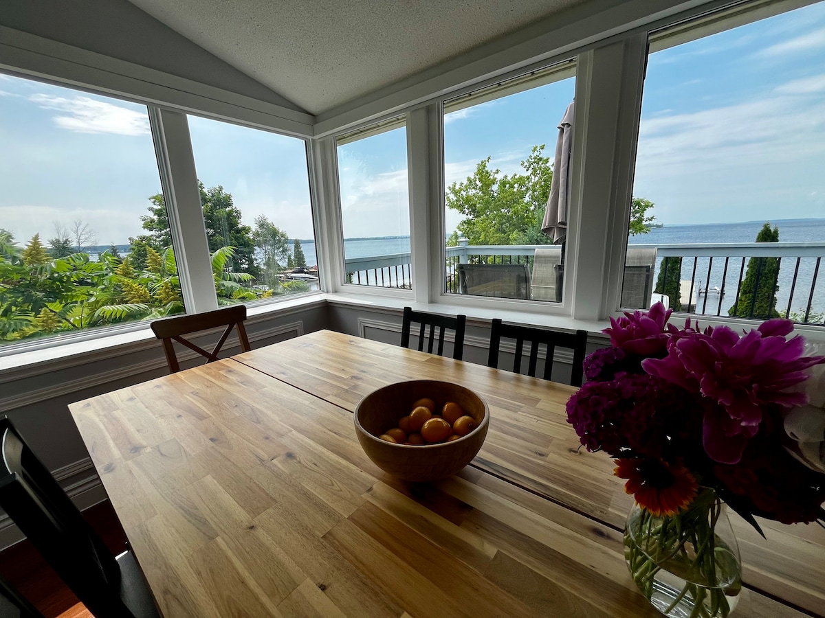美しく改装された「オールシーズン」ビーチフロントコテージに滞在して、ジョージア湾の息をのむようなパノラマビューをお楽しみください! 世界で最も美しい淡水ビーチの1つにある砂丘の上にあるコテージを見つけることができます。 この珍しいロケーションには、周辺のどこよりも湾に近いビーチハウスにあり、白い砂の上に浮かぶ専用の屋根付きデッキがあります! 夏のゲストは、温水塩水プールとポール・ラフランスが作った大きなリゾートデッキもご利用いただけます。
