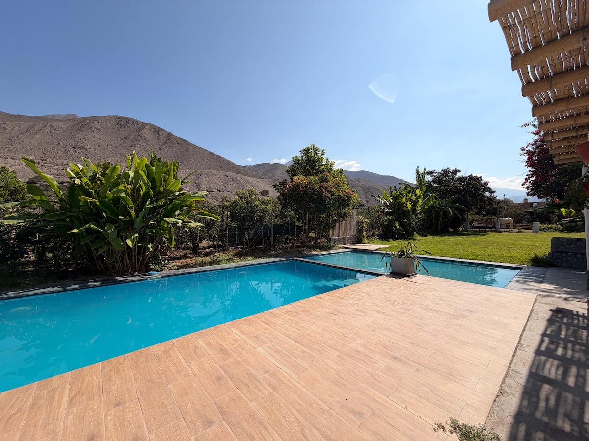 Bonita habitación para pareja, ubicada en el cálido valle de Calango, a 1 hora y media de la ciudad de Lima. - Para 2 personas. - Cama king (3 plazas). - Baño privado. - Mesa + 2 sillas. - Balcón Además en las áreas compartidas: - estacionamiento privado. - zona de parrilla. - Zona de fogata. - Zona de wifi. - Piscina para niños y adultos. - áreas verdes - Restaurante - juegos de fulbito y sapo. Horario: Check-in es a partir de las 3 pm y el check-out hasta las 12 pm