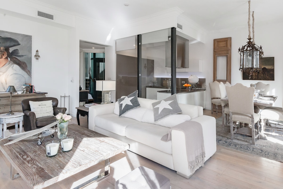 カンヌの豪華な海を見渡すペントハウス。