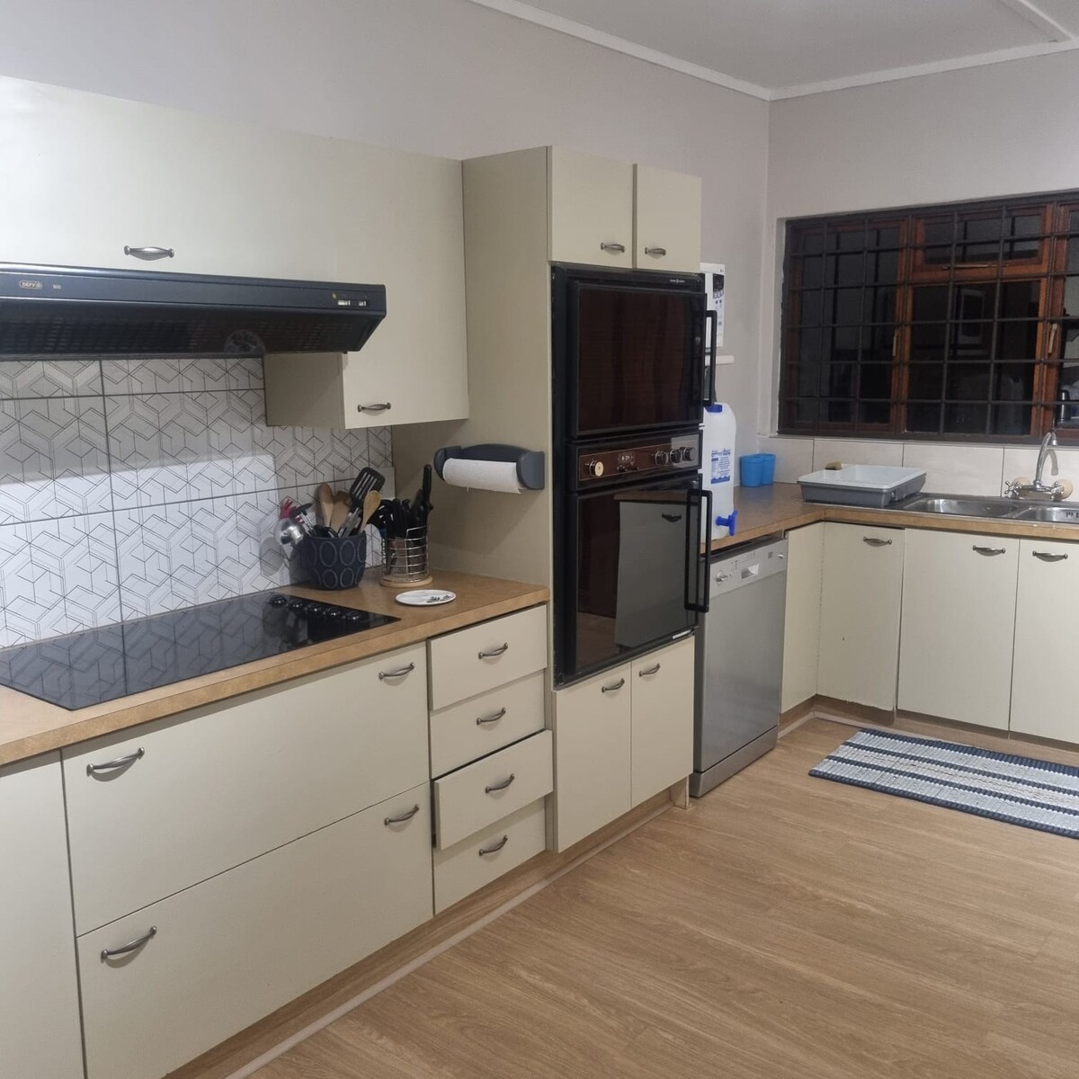 こちらの宿泊先のかわいらしさには、きっと心を奪われるはず。 1階にある寝室1部屋の自炊ユニットで、ビーチから徒歩圏内で4人家族が宿泊でき、子供たちはリビングエリアのソファーベッドに宿泊できます。 ユニットにはキッチン、バスルーム1室、DSTVの全チャンネルと無料Wi-Fiが利用できるラウンジ、ガスバーベキューが楽しめる快適なパティオがあります。 ソーラーパワーがあるので、負荷制限による停電はありません。 地元のコンビニとレストランまで徒歩圏内です。
