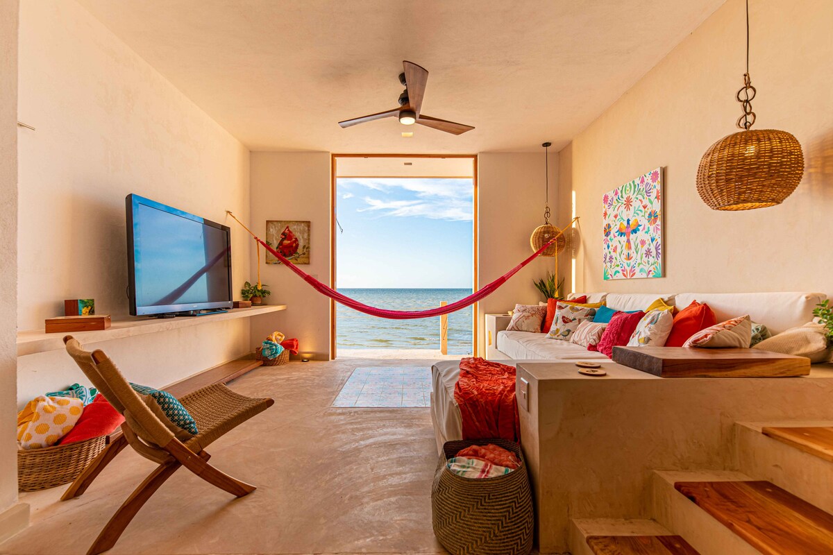 サン・クリサントにあるビーチフロントヴィラ「Casa Kyma」へようこそ(メキシコ、ユカタン州メリダから50分)。 海の眺めと忘れられない夕日を楽しめる3ベッドルームのヴィラをまるごと貸切でご利用いただけます。 お部屋はそれぞれ、思い出に残る滞在のために考え抜かれたスタイルでデザインされています。 ヴィラには大人6名様が宿泊可能で、お子様は追加料金なしでご両親とベッドを共有できます。 ヴィラ内には設備の整ったキッチンがあり、外には屋外グリルを楽しむためのバーベキューエリアがあります。