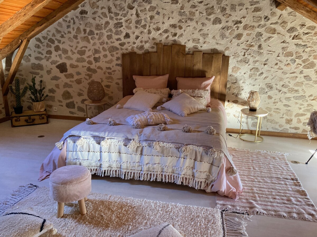 大人4人と子供2人までのご家族連れのお客様に、この静かな宿泊施設でリラックスしたご滞在をお楽しみいただけます。3m*4mの小さなプライベートプール(6月から8月末まで利用可能)とジャグジー(天候に応じて5月から10月末まで利用可能)。ドルドーニュ川のほとりまで徒歩5分。ビーチで遊んだり、散歩したり、ヴァル城を眺めたり、ハイキングしたり、コレーズ県やカンタル県の美しい村を訪れたりできます。 注意:Wi-Fiはありません
