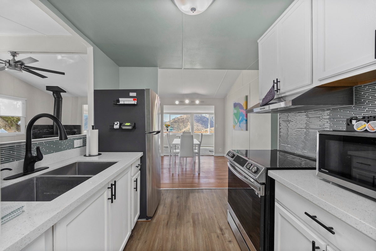 テハチャピの山にあるこの広々とした静かな場所で、日常の心配事を忘れましょう。 2.5エーカーの敷地内にあり、谷を見渡すことができ、テハチャピのダウンタウンからわずか5分です。快適さと利便性の両方を求めるならここがおすすめです。 騒音から逃れ、この改装済みの2ベッドルーム、2バスルームの家でのご滞在をお楽しみください。 居心地の良い暖炉の横にある広々としたファミリールームでお気に入りの映画をストリーミングしたり、ガーデンルームでシャッフルボードをしたり、パティオの裏でバーベキューをしたりして時間を過ごしましょう。