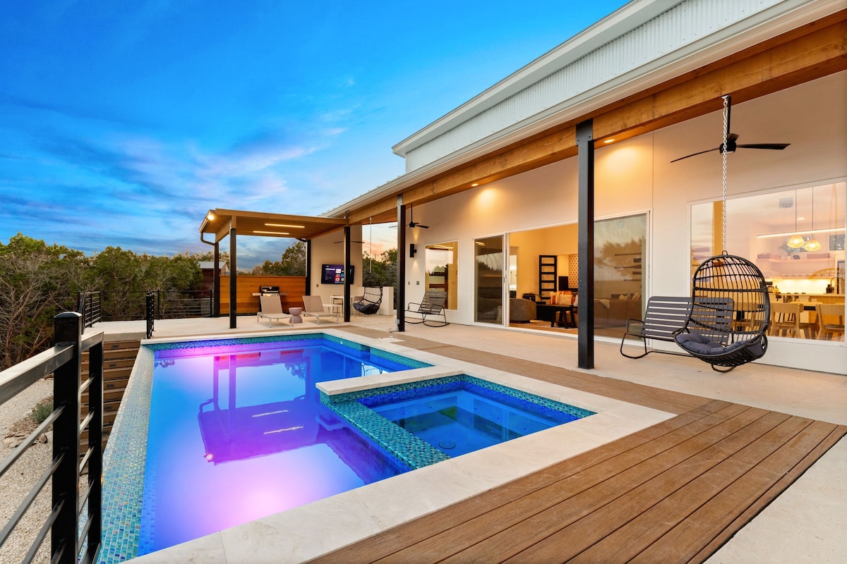 😍 Top 1% of all homes on Airbnb! Planning a relaxing getaway with family and friends, or maybe the most epic girls trip? This house isn’t just a place to stay, it’s an experience! Million dollar views, heated pool (additional fee), spa, Hill Country’s largest outdoor net bed, yard games, arcade, and fully stocked kitchen and coffee bar await you! * Must be 25 or older to book * Strict no party rules here. Peaceful environment must be respected *Pool can be heated for additional $200/night
