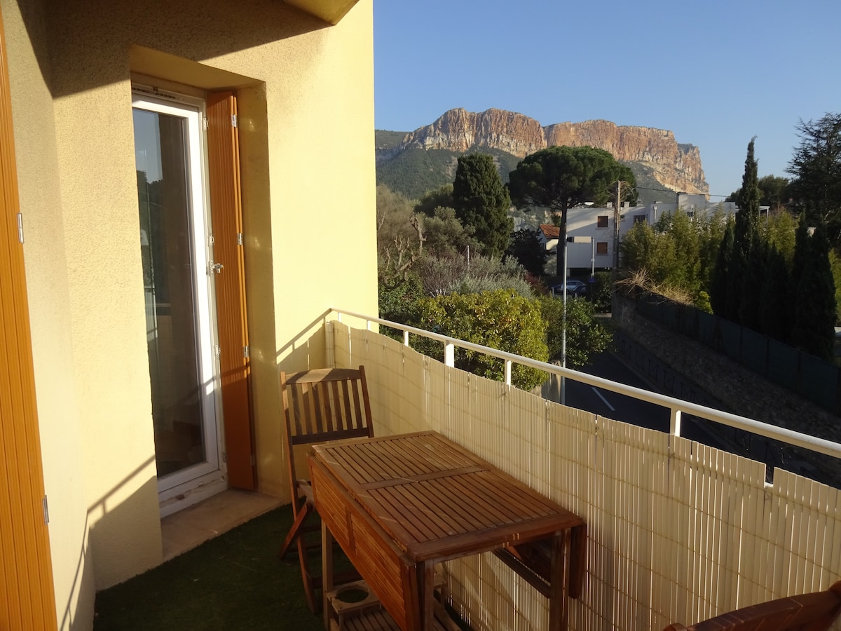 Appartement lumineux de 70m2 avec vue imprenable sur le port de cassis, le château, le cap canaille ( plus haute falaise d'Europe). Vous pourrez vous déplacer à pieds depuis l'appartement pour vous rendre en plein coeur de Cassis où il y a tous les commerces, restaurants,bars et à 150 mètres des 2 plages. Rénové en Mars 2018 , tout confort , grand salon avec coin repas ,chambre principal avec un grand dressing lit de (160X200 ),cuisine aménagée et équipé, salle de bain avec douche à l'italienne.