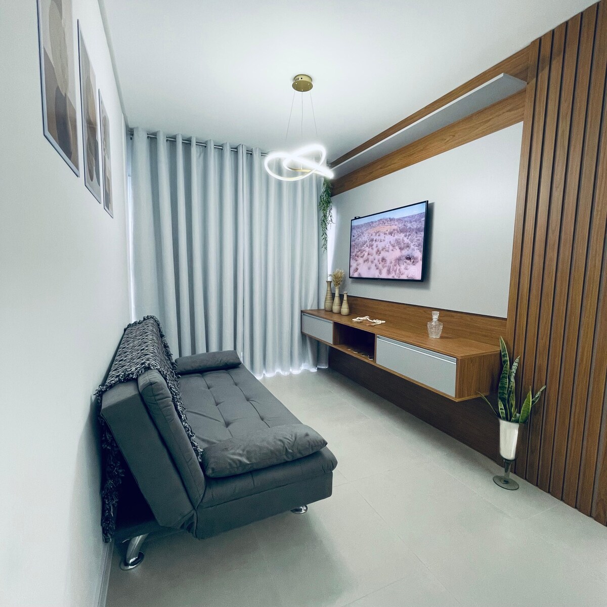 このスタイリッシュな場所で家族みんなと楽しみましょう。 ここでは、2スイート+洗面所、3環境のリビング+ソファベッド、6人用ダイニングテーブル、3つのスツールが付いたアメリカンスタイルのキッチン、裏の閉鎖パティオ、エアスプリット、テレビがすべての部屋にあります。 車用スペース+訪問者用スペース。 インフラストラクチャー - 美しい人工ビーチ、大人用プールと子供用プール、温水プール、ジム、サウナ、キッズスペース、ペットスペース、レストラン(営業時間)