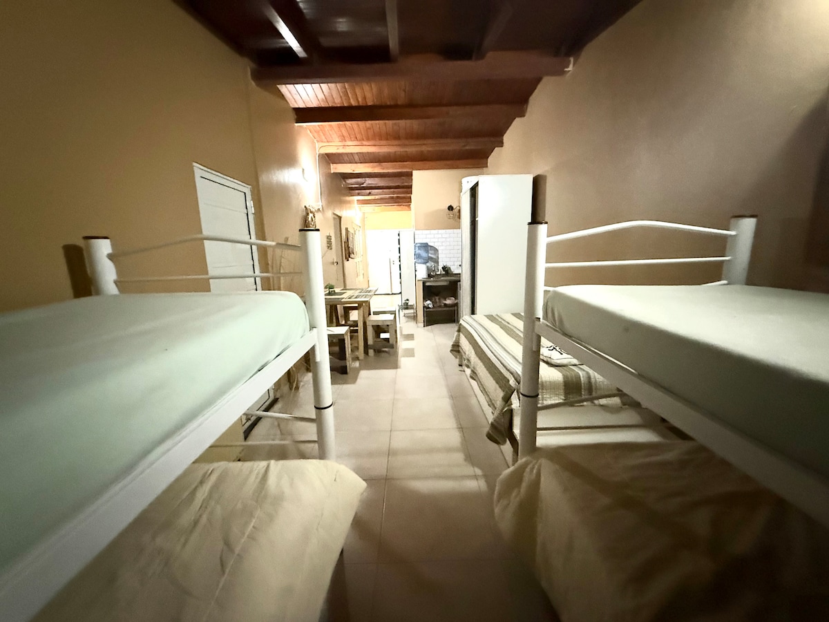 - ダブルベッドとシングルベッドのマリネラを備えた主寝室。 - エアコン -テレビ(ケーブルとネットフリックス) -クローゼット -リネン類 • キッチン - 電気コンロ -オーブン -食器類 -冷蔵庫 •バスルーム •宿泊施設から数メートルの場所に有料駐車場 •プール