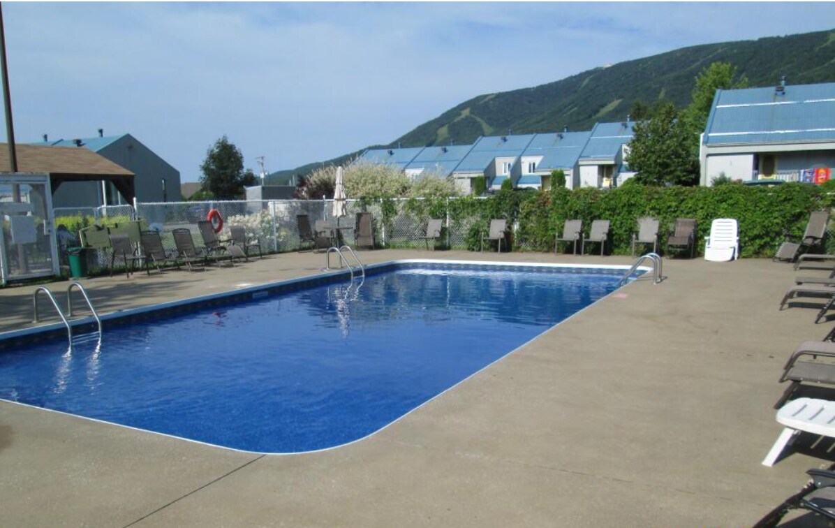 Bienvenue chez vous, que vous soyez une FAMILLE, un couple ou pour venir y travailler en TÉLÉTRAVAIL. Ce chalet complètement équipé saura vous plaire avec ses grandes fenêtres ouvertes sur la nature. Le chalet est près du bâtiment principal où vous pourrez y trouver deux PISCINES CHAUFFÉES (fermée de octobre à mai), un spa, deux SAUNAS et BILLARD. À l'arrière du chalet se trouve le début d'un beau sentier pédestre qui longe un cours d'eau. À proximité vous pourrez y faire plusieurs activités.