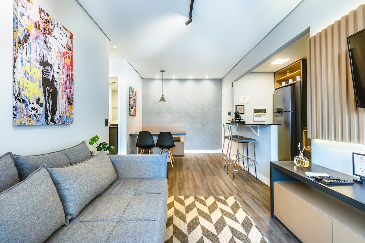 スタジオ amplo e estiloso no Cambuí 75m2 c/AR e GAR