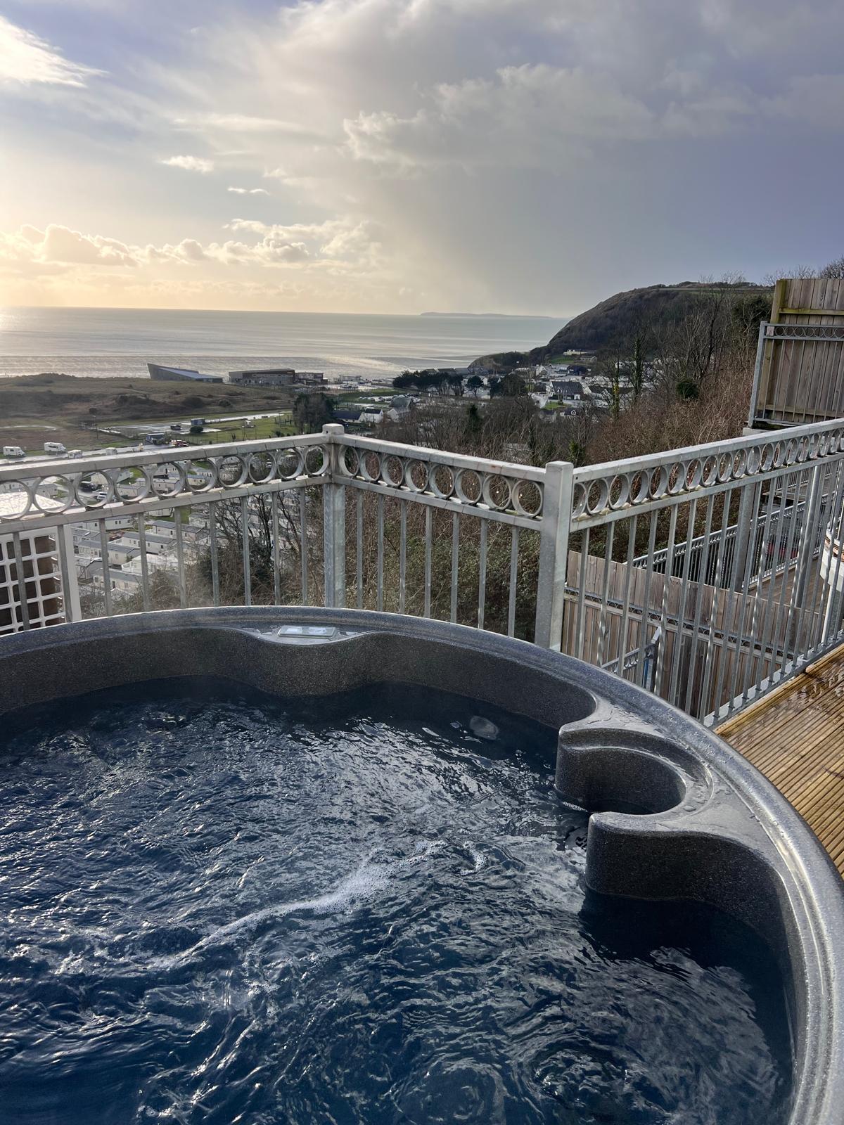 海の眺望、露天風呂・ジャグジー、バルコニー、4つ星Visit Wales