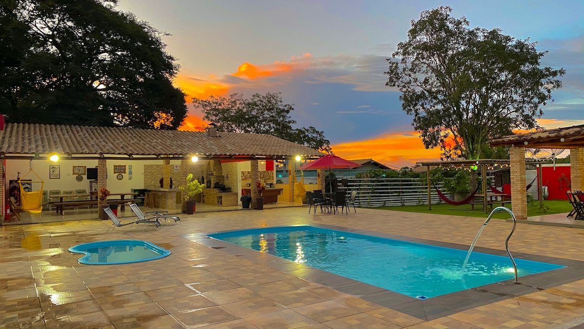 ディビノポリスから20分の場所にある3,000m²の農場。芝生、ペテカコート、温水大人用プール(33,000L)、子供用プール(1,500L)。 家には3つのベッドルームがあり、1つはエアコン付きスイート、テレビルームには2つのソファー、ソーシャルバスルームには温水シャワー、キッチンには冷蔵庫、冷水ドリンク、コンロ、オーブン、調理器具が完備されています。 また、2つのバスルーム、薪ストーブ、コンロ、バーベキュー、オーブン、ビリヤード、複数のテーブル、冷凍庫、テレビ、ホームシアターを備えた広いグルメスペースもあります。