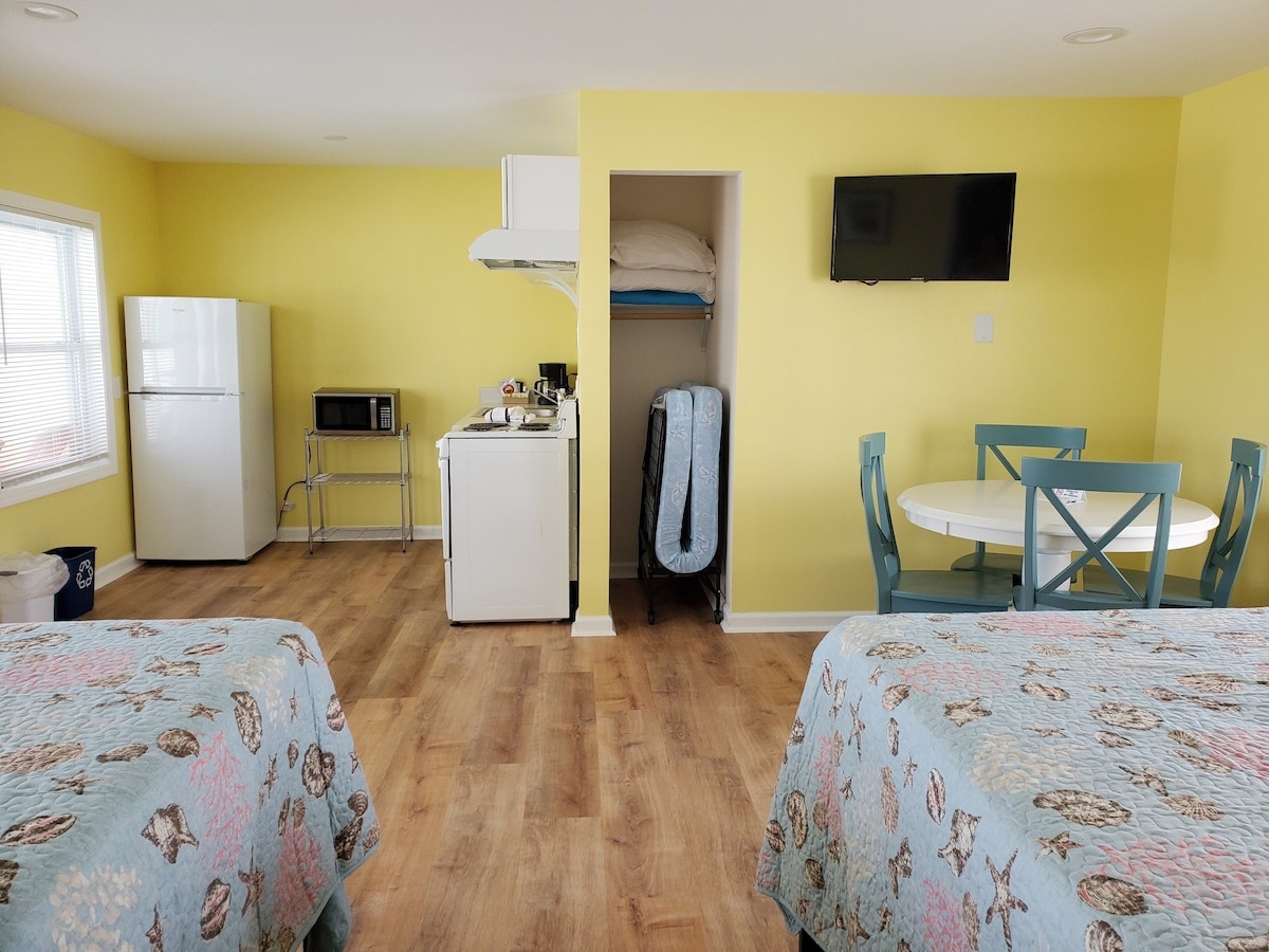 ビーチや歴史的なボードウォークからわずか1,000フィートの魅力的なデザイナーズモーテルにある、2名様用の快適なダブルベッドルームです。セルフチェックイン、無料駐車場、敷地内のプールをお楽しみください。ペット歓迎!お部屋にはコーヒーメーカー、コーヒー、電子レンジ、新鮮なリネン、新しい家具が備わっています。快適に過ごせるよう、ウォークインシャワー、暖房、エアコンを完備しています。ショッピング、バー、レストランから徒歩圏内。一度駐車して徒歩で探索しましょう。屋外テーブルと椅子がある専用の玄関先でリラックスできます。直前予約でも、完璧な海岸沿いの宿泊先です!