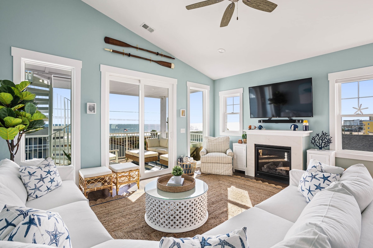 Wake up to sweeping ocean views at Finn’s Up, your perfect Carolina Beach escape. Ideally located beside the North End Pier, this bright, beautifully designed two-bedroom condo invites you to start your day with coffee on the porch daybed, then step straight into sun-filled beach days and relaxing coastal evenings. Just steps from the island’s only year-round dog-friendly beach, everything you love about Spring Break - scenery, convenience, and laid-back island charm is right here.