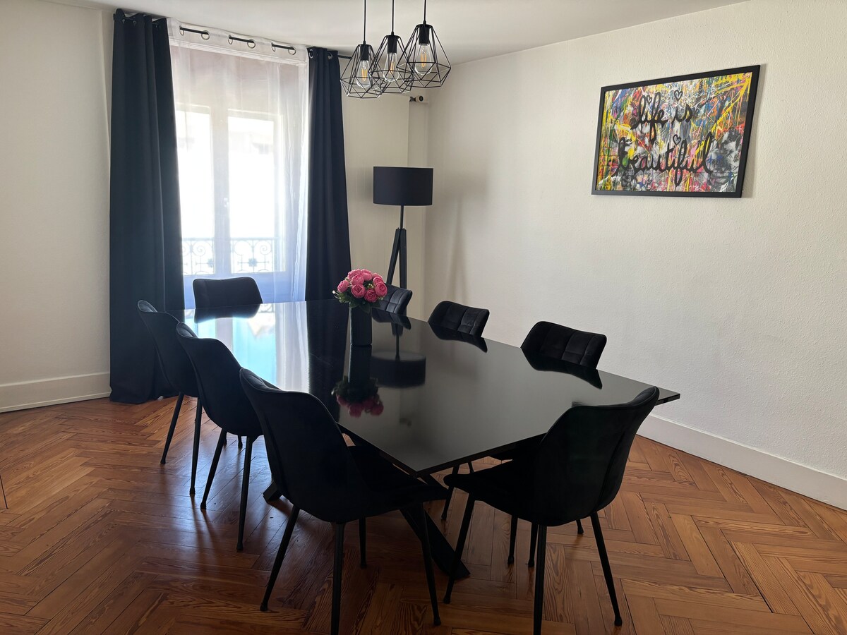 この居心地の良いアパート(75平方メートル)は、ジェット・ドーの近く(徒歩5分)のアパートの1階にあり、駅から20分で、すべてのおしゃれなショップ、レストラン、交通機関(路面電車のヴィレルーズ停留所と31デセンブルバス停)に近いです。 冷蔵庫、セラミックホブ、オーブンを備えたキッチン、トイレとバスタブを備えたバスルーム、クイーンベッド1台を備えた寝室。 アパートには大人2名様が宿泊できます。 タオルは含まれています。動物は禁止です。