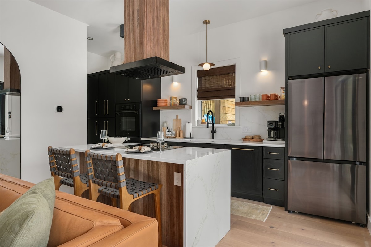 Petite Noire - ビーチ、湾、自然の散策道までわずか数分のノースカロライナ州キティホークにある新築の豪華なタイニーハウス。 多くのスパアメニティを提供する、完璧なロマンチックな休暇です。 ºキングサイズのジェル注入マットレス ºレインシャワーヘッド2つ付きの大型ウォークインシャワー ºキティホークの森を見下ろす屋外の銅製の浴槽2つ ºジャグジー ºレインシャワーヘッド2つ付き屋外シャワー º伝統的なバレルサウナ ºフルキッチン º高級感のある仕上げ