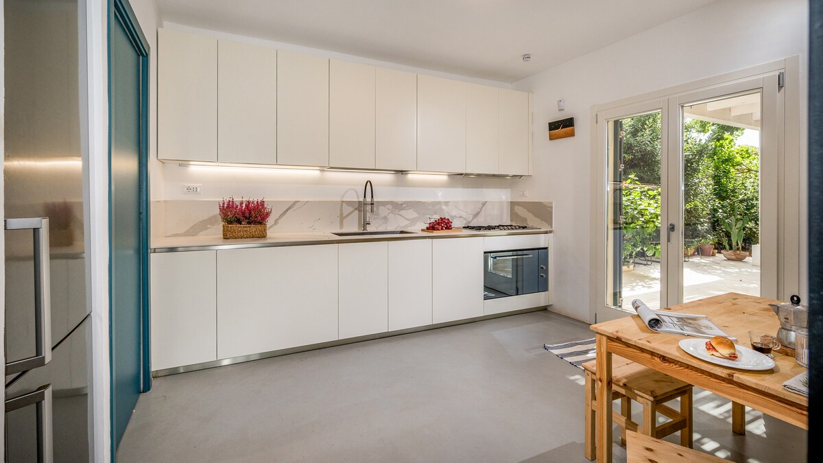 Casavento Puzziteddu is a contemporary style villa surrounded by a lush garden in western Sicily, a few steps from Puzziteddu beach. The name recalls the wind and waves that have made this area a popular destination for kitesurfers. Designed to offer maximum comfort and furnished in typical Sicilian coastal colors, the villa is spread over two floors and includes a kitchen, dining area and living room, three bedrooms and three bathrooms.