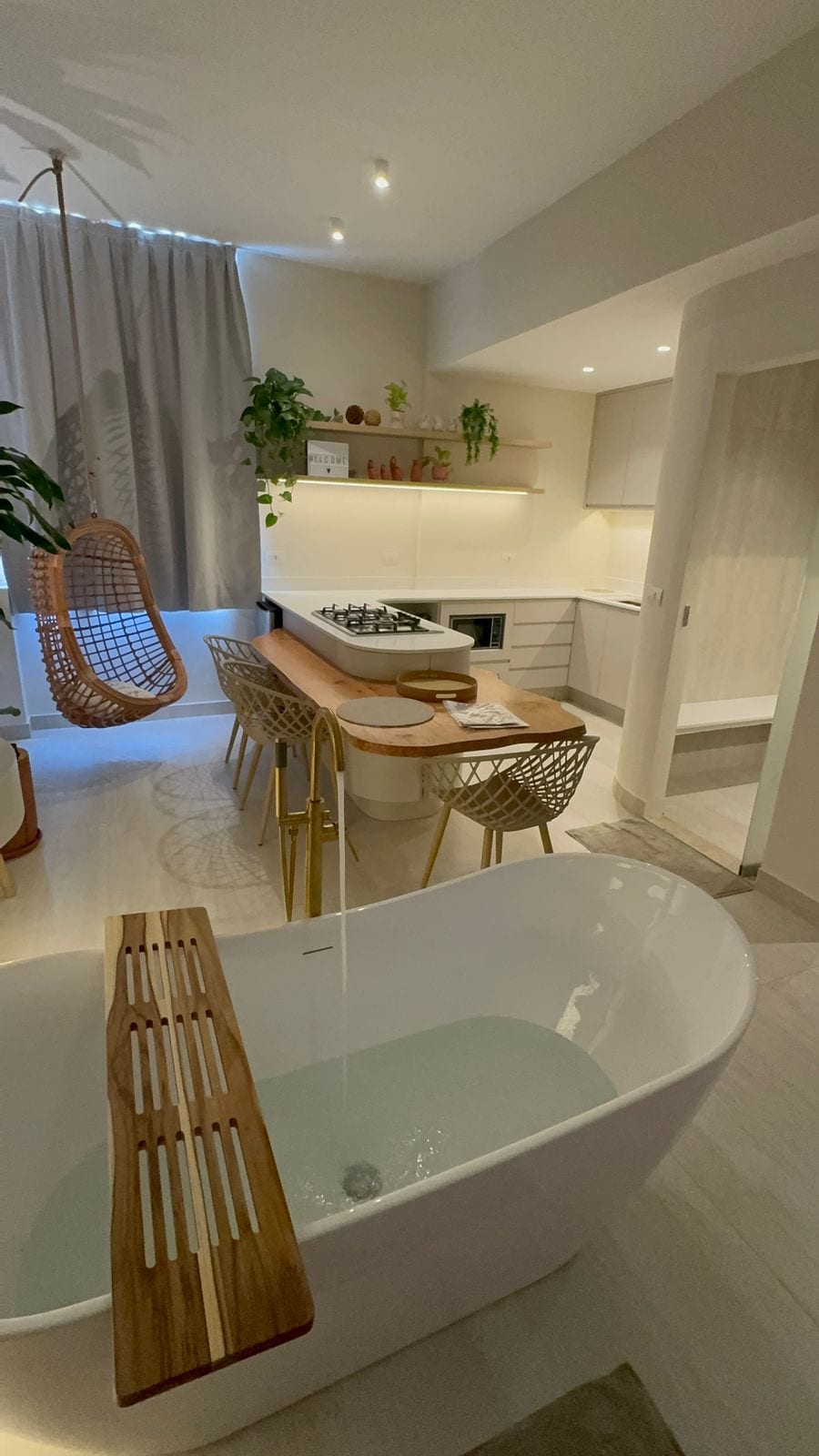 とても豪華で、装飾も素敵です。絶妙な休暇をお探しなら、こちらです!このオアシスのオリジナルのアートワークを含む仕上げとディテールが5つ星の雰囲気を提供します。Ipadで108インチスクリーンとエンターテイメントセンター、エアコン、照明の雰囲気を操作できます。上質なTrousseauのコットンタオルと寝具が体験を完成させます。ビーチ、公共交通機関、スーパーマーケット、薬局、LGBT+バー、レストランがすべてすぐそばにあります。キーパッド入力と24時間監視カメラにより、安心とプライバシー、セキュリティを提供します。