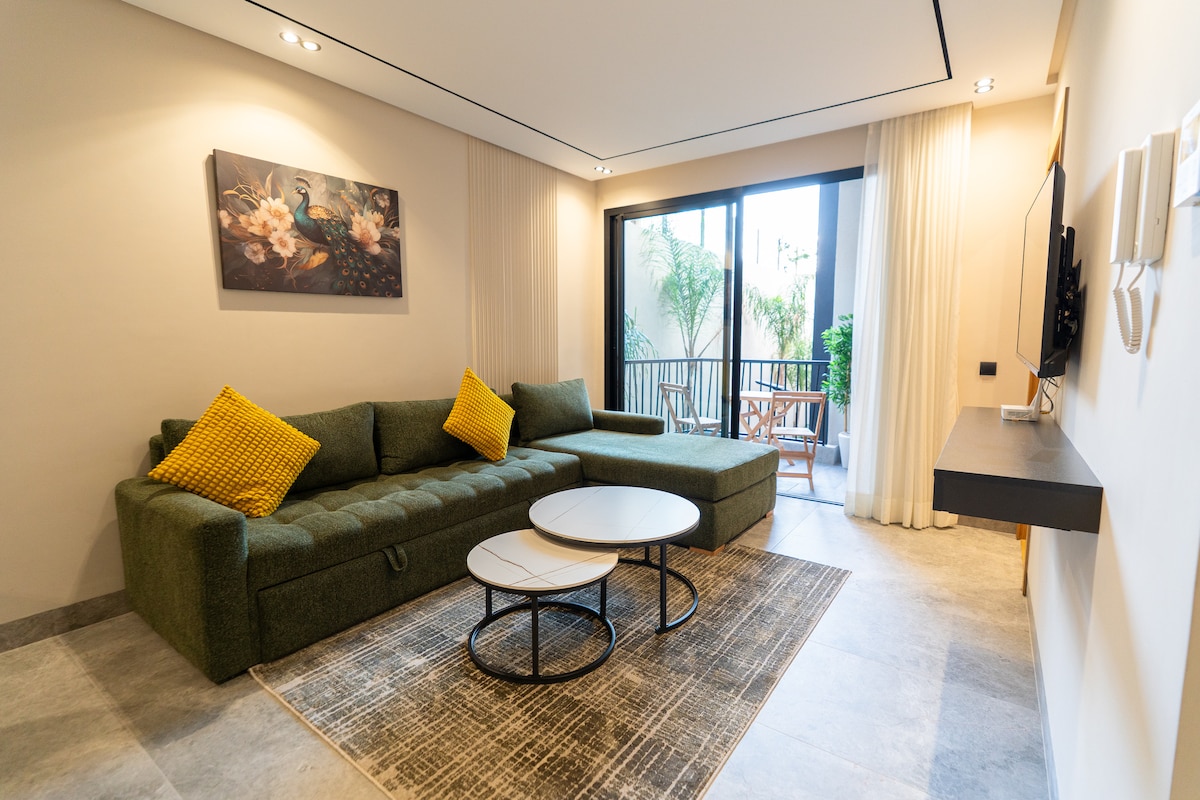 Luxurious Studio Apartment, situated in the upscale and safe, Val Fleuri neighborhood, this space can take up to 3 travelers. The apartment is in a new secure building. It's furnished and decorated to guarantee a comfortable luxury experience. It's in the Maarif district, which has more shops than anywhere in Casablanca. The place is in 50 meters to a tramway station, and a public garden, and you can find all stores near the building.
