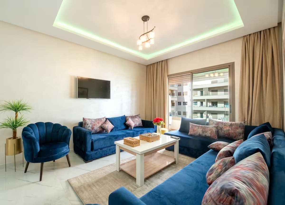 Welcome to Green Oasis, a contemporary three-bedroom apartment tucked away in one of Casablanca’s most peaceful and sought-after neighborhoods—an exceptionally quiet and pleasant area, close to all essential amenities (train station, restaurants, supermarkets, banks, pharmacies, and clinics)—this newly built 133m² apartment offers a refined and comfortable setting for families, professionals, or groups of friends. Whether you're visiting for business or leisure, Green Oasis is the perfect place.