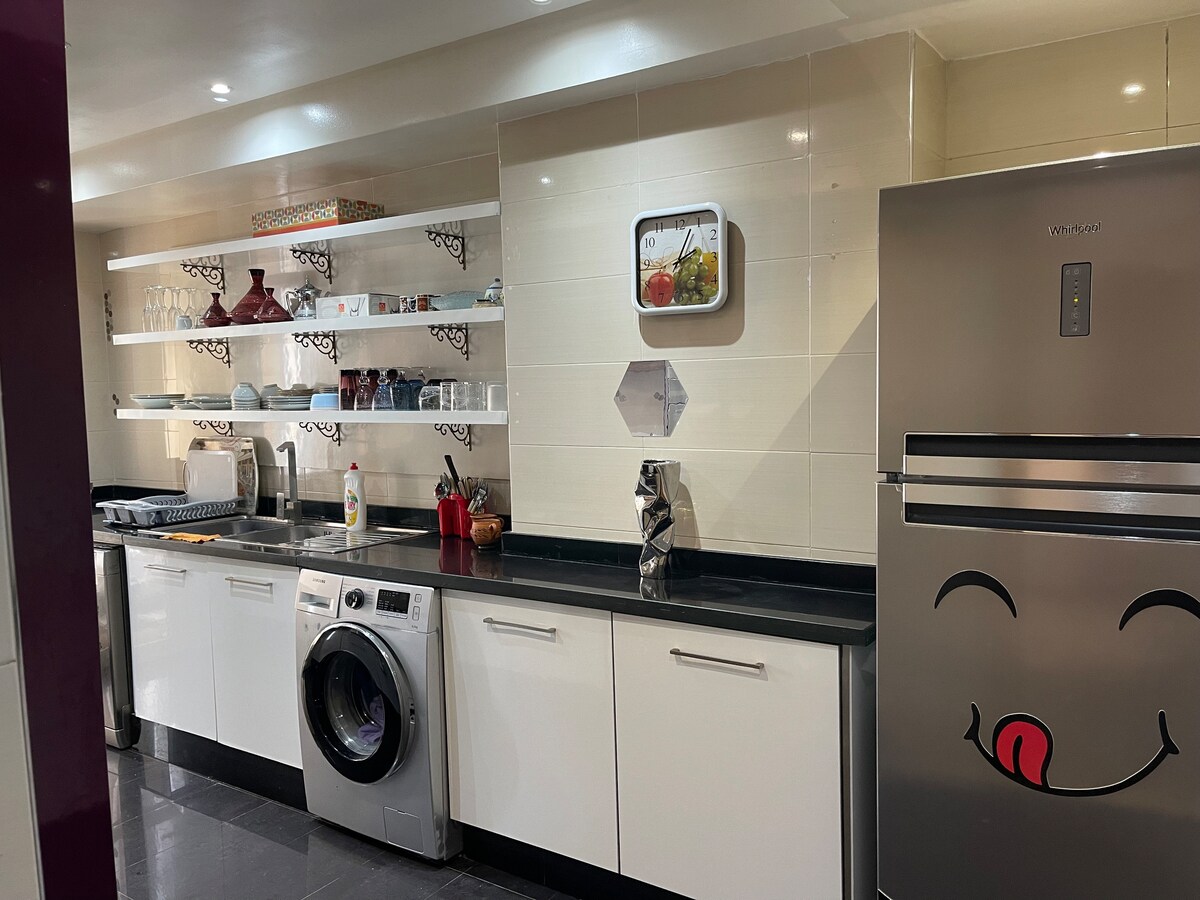 「アンファクラブ」路面電車駅前のカサファイナンスシティにあるユニークでモダンな宿泊施設。 市内で最も美しいエリアで、マアリフから5分、カサブランカ国際空港(CMN)から20分で、駐車場、屋上プール、ジム、スパ(ハマムとサウナ)を備えた高級レジデンスにあります。 アパートの構成は次の通りです。 - 大きな寝室2部屋 - バスルーム2室 設備の充実した台所 IPTV(スポーツ、スカイ、海外チャンネル)、Netflix、プライムビデオ付きスマートテレビ 高速Wi-Fi