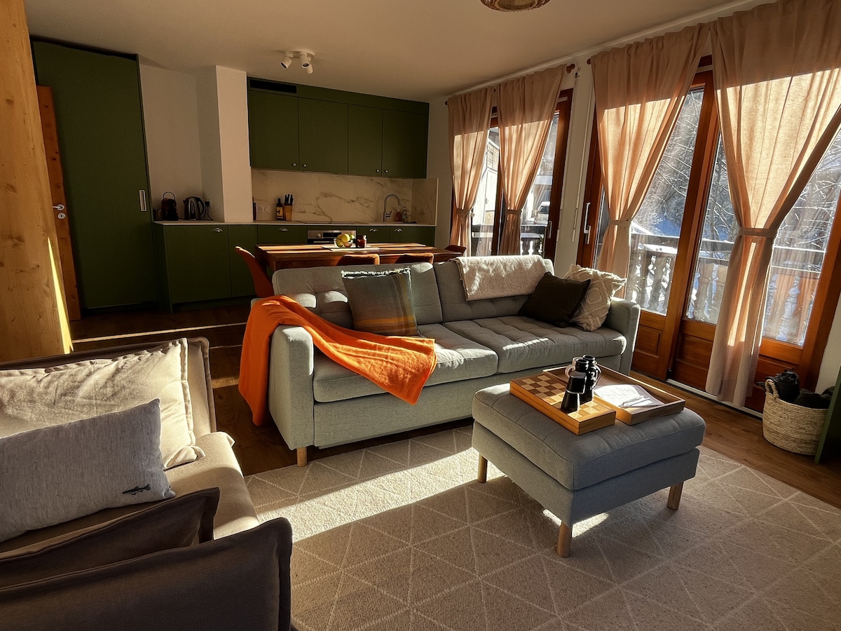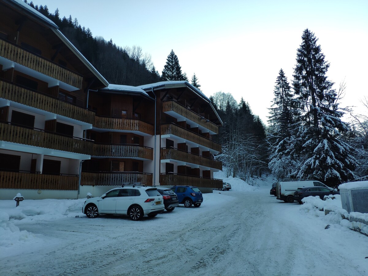 天然木の装飾と山の景色を楽しめる、新しく改装された快適なアパートです。ニョン・テレカビーヌからわずか100 mの場所にあり、スキーイン/スキーアウトへのアクセスが簡単で、モルジンの町の中心部(5分)まで無料シャトルバスが運行しています。 寝室にはダブルベッド、コイン・ド・モンターニュには二段ベッドがあり、4人まで宿泊できます。アメニティには、スキー/ブーツ用の個別の収納と無料駐車スペースが含まれます。素晴らしい景色を眺めながらバルコニーでリラックスしましょう! 最近、メインのダブルベッドに新品のマットレスを用意しました。