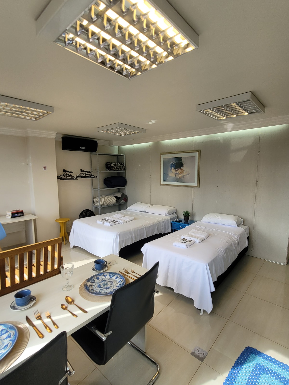 スタジオアルファゼマは、独自のスタイルを持つユニークな場所です。 カスカヴェルのこの好立地で、エレガントな体験をお楽しみください。最大3名様まで収容可能な16m2の快適なスペースで、ブラジル通りから1ブロックの非常に便利なロケーションです。 カスカヴェル市の中心部に滞在し、あまり移動することなく、徒歩であらゆる場所にアクセスできます。 高速Wi-Fi 500メガ! エレベーター付きの建物。 24時間対応のフロント。 同じブロックにはランドリー、レストラン、カフェ、ラウンジがあります!