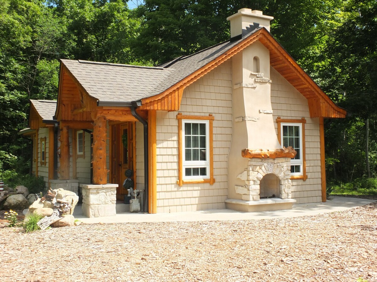 この美しいキャビンは、Kal-Haven Trailに隣接する50エーカーの敷地内にあります。 キャビンは森に面しており、大きな窓、フレンチドア、高い屋根線が特徴で、自然の眺めを最大限に楽しむことができます! 寮サイズの冷蔵庫、電子レンジ、エアコン、手作りの家具、キングベッド、クイーンサイズのソファベッド(最大4名様まで寝られるスペース)が備わっています。 ユニット内にバスルームはありませんが、徒歩すぐのところには、施錠付きシャワー付きの美しく手入れの行き届いたバスハウスがあります。