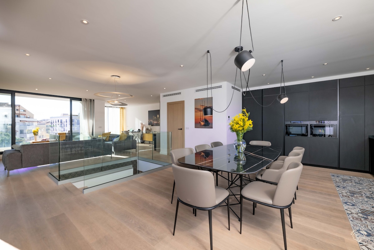 この新しい素晴らしいロフトで夢の休暇を! 海辺の高級な木々に囲まれた住宅地にあり、海に足を浸すことができます。 屋上の壮大なインフィニティプール(海/山/夕日を望む)で、素晴らしい環境でご滞在ください。 ジャグジー、リビング、デッキチェアを備えた50m2のプライベート屋上庭園で日光浴を楽しみましょう。 そして、屋根付きテラスの日陰でおいしい食事をお楽しみください。 商店や専用駐車場に非常に近いです。