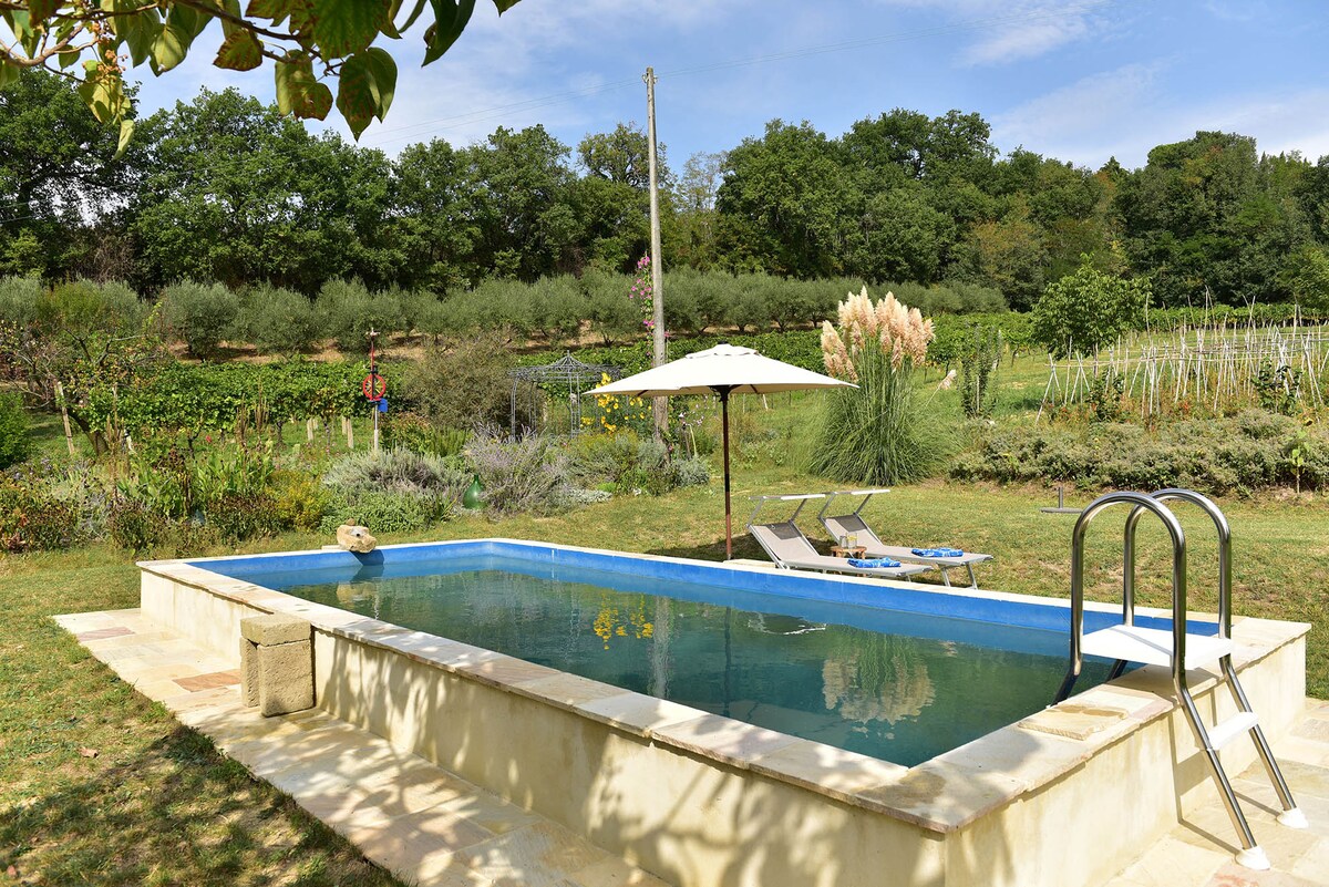 この60平方メートルの別館は、私共の地域を訪れたいカップルに適しています。プールはありませんが、トリュフ畑、小川、ノロジカ、ハリネズミ、イノシシ、私たちの猫たち、そして小犬のモティがいます。庭には、ハーブや果物、菜園の産物があります。貸し出している小屋の中には、私共が生産しているオリーブオイルとヘリクリサムリキュールがございます。サフランも栽培していますが、これは販売しています!もちろん、ペットも大歓迎です!