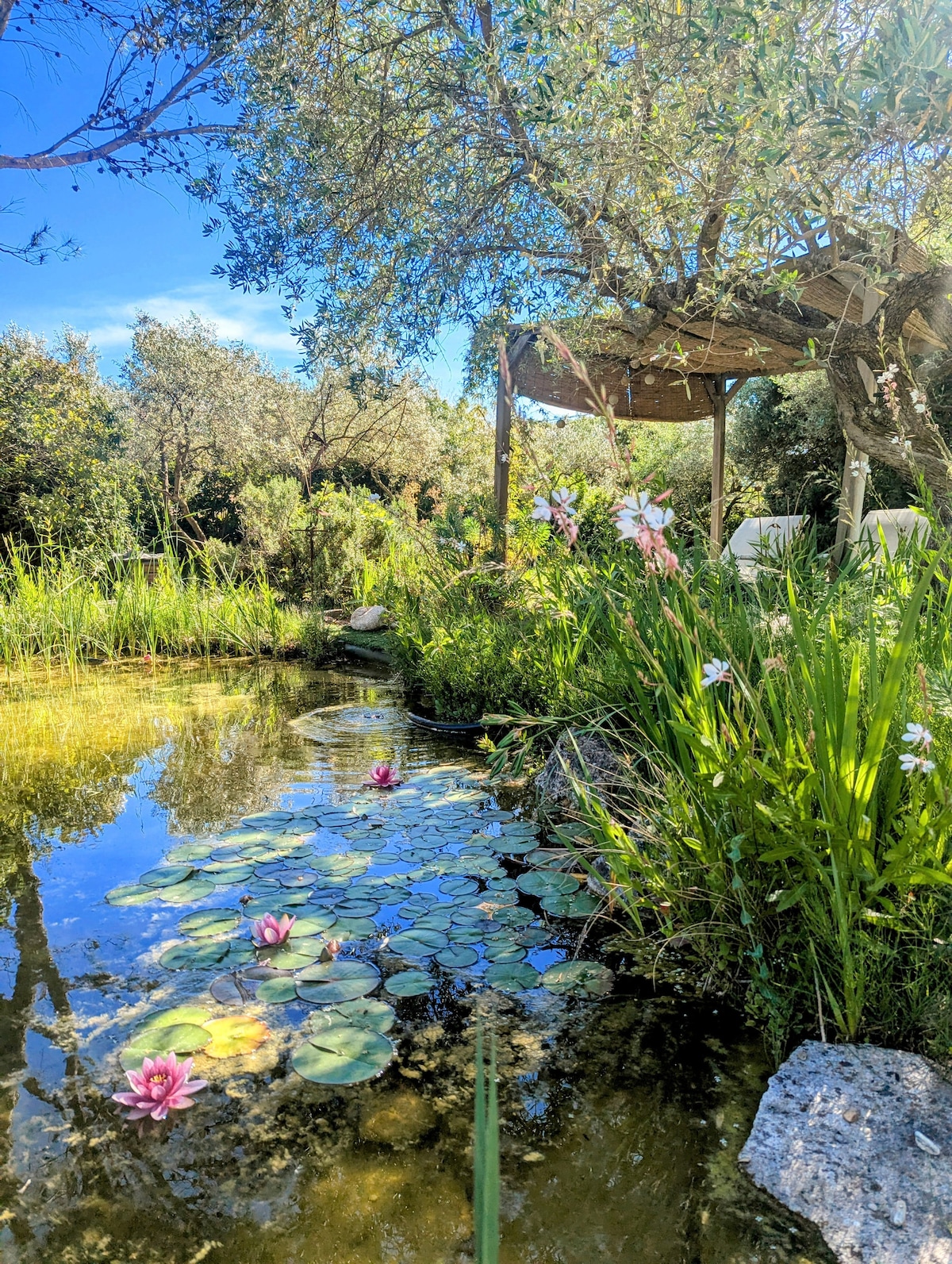 ポン・デュ・ガール近くでの滞在をお楽しみください。 100年以上の歴史を持つ約60本のオリーブの木が生い茂る自然の中に、小さな楽園が広がる様子を想像してみてください。そこには、涼しいひと時を過ごせる天然の池もあります。この居心地の良い明るい家は、ガリグの中でのんびりしたり、散策したりしながら、静かな休暇を過ごすのに最適な場所です。