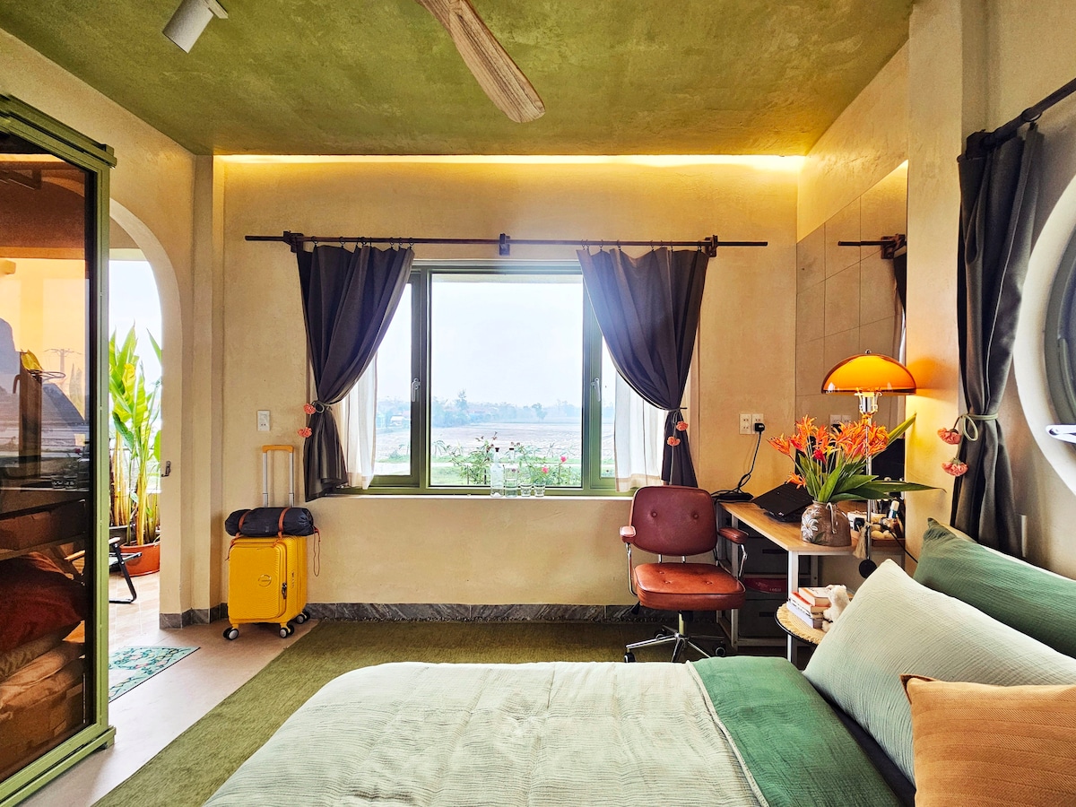 Welcome to our charming homestay featuring 2 rooms and one spacious tent, perfect for accommodating a group of friends and family. Enjoy the serene camping site located conveniently near the home. For a day of adventure, take a short drive or bike ride to the nearby river stream and beach. We also offer delicious meals delivered from our on-site restaurant upon request. Experience the perfect blend of nature and comfort at our riverside retreat!