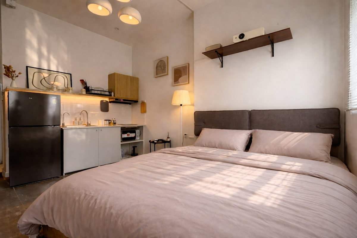 サイゴンの中心部の路地に隠れたユニークな60平方メートルのスタジオで、プライバシーと利便性の両方を提供しています。タウンハウスの2階にあり、1階の居心地の良いBeanThereカフェの真上にあります。スタイリッシュな生活と素晴らしいコーヒーが好きなゲストに最適です。有名な観光スポット、ショッピングモール、活気あるナイトライフからわずか数分です。 各ゲストは1泊につき1回無料の朝食をお楽しみいただけます(食事1品とドリンク1杯のセット)。 4泊以上のご宿泊の場合は、1日前までにご連絡いただければ無料でハウスキーピングをさせていただきます。