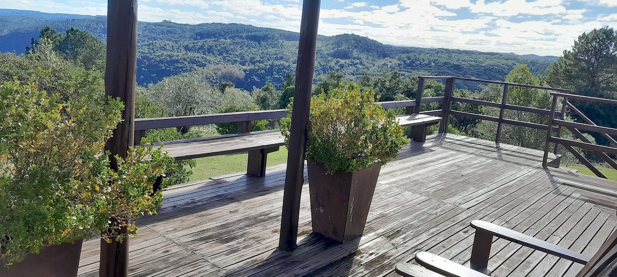 O luxo da nossa hospedagem está na simplicidade e aconchego de cada detalhe." Venha desfrutar momentos e experiências, criando memórias afetivas! Nosso refúgio está em meio à natureza, cercado por belíssimas araucárias e mata nativa preservada, o que torna a paisagem única e encantadora. Por ser um ambiente natural, é possível, ocasionalmente, ocorrer a presença de insetos e outros elementos da fauna e flora local — algo que faz parte da experiência única de estar em contato com a natureza