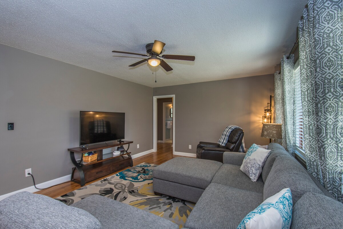 メトロコロンビア。USCまで1.5マイル。フォートジャクソンまで9マイル! まるまる貸切の一戸建て。 寝室は2部屋あります。1部屋にはキングベッドがあり、もう1部屋にはクイーンベッドがあります。 バスルームは1つ。囲まれたサンルームには追加の折りたたみベッドがあります。 リネン、ソファ、ラブシート、冷蔵庫、食器洗い機、生ゴミ処理機、洗濯機、乾燥機、ロッキングチェアとダイニングテーブルを備えた屋根付きパティオがあり、巨大なフェンス付きの広い専用裏庭が見渡せます。 明るく、快適で、静かです。駐車スペースはたくさんあります。