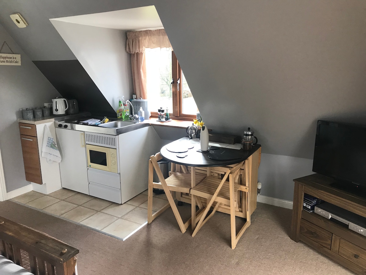 Our cottage is a lounge/Kitchen that is light & airy with French doors leading to the patio, I supply milk, Tea, coffee, sugar, cereal, cake, biscuits, We have a washing machine & Tumble dryer in the kitchen, These are NOT for use of one Night Stays, Only for guests staying 4 days or longer. Upstairs, double bedroom, TV, Hairdryer, wardrobe, hangers, bedside cabinets lamps, Iron & ironing Board. Bathroom bath & overhead shower, I supply Towels, shower gel, shampoo & conditioner & toilet rolls,