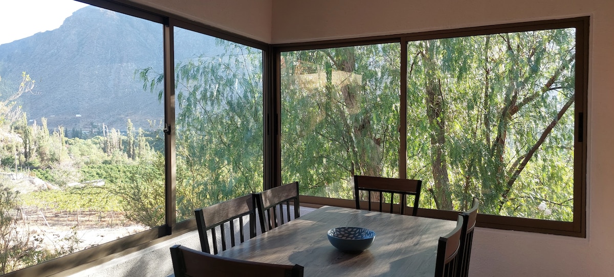 Tranquilidad y conexión con la naturaleza. Casona de Adobe con techo de Totora, con más de 100 años de antiguedad. restaurada recientemente. Cuenta con 3 habitaciones con camas matrimoniales, 2 baños, cocina, living, quincho, corredor, muchas vistas maravillosas desde el lugar. Especial para descansar de los ruidos y congestión de la ciudad. Puedes recorrer el cerro lleno de flora nativa, realizar trekking, paseos en bicicleta etc. El río se encuentra a 7 minutos caminando.
