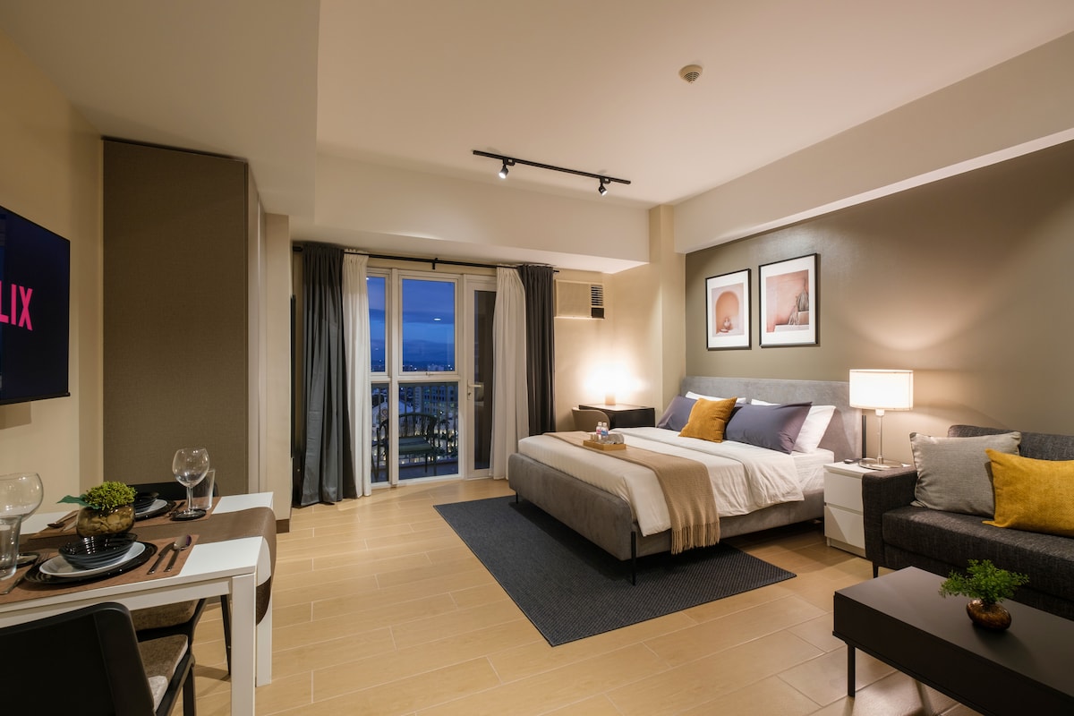 アップタウンモールに直接アクセスできるスタイリッシュなデザインのコンドミニアムに滞在しましょう。最大3名様までご宿泊いただけます。ダブルベッド、ソファベッド、100 Mbpsの高速インターネット、ケーブルテレビ、Netflixなどのエンターテイメントを備えた広々とした36平方メートルのユニットでリラックスしてください。キーレスエントリーの利便性と、プール、屋上アクセスなどのプレミアムアメニティをお楽しみください。必要なものはすべて、モール、バー、食料品店など、すぐ近くにあります。さらに、BGCでは稀な無料駐車場もあります。今すぐ予約して最高の滞在を!